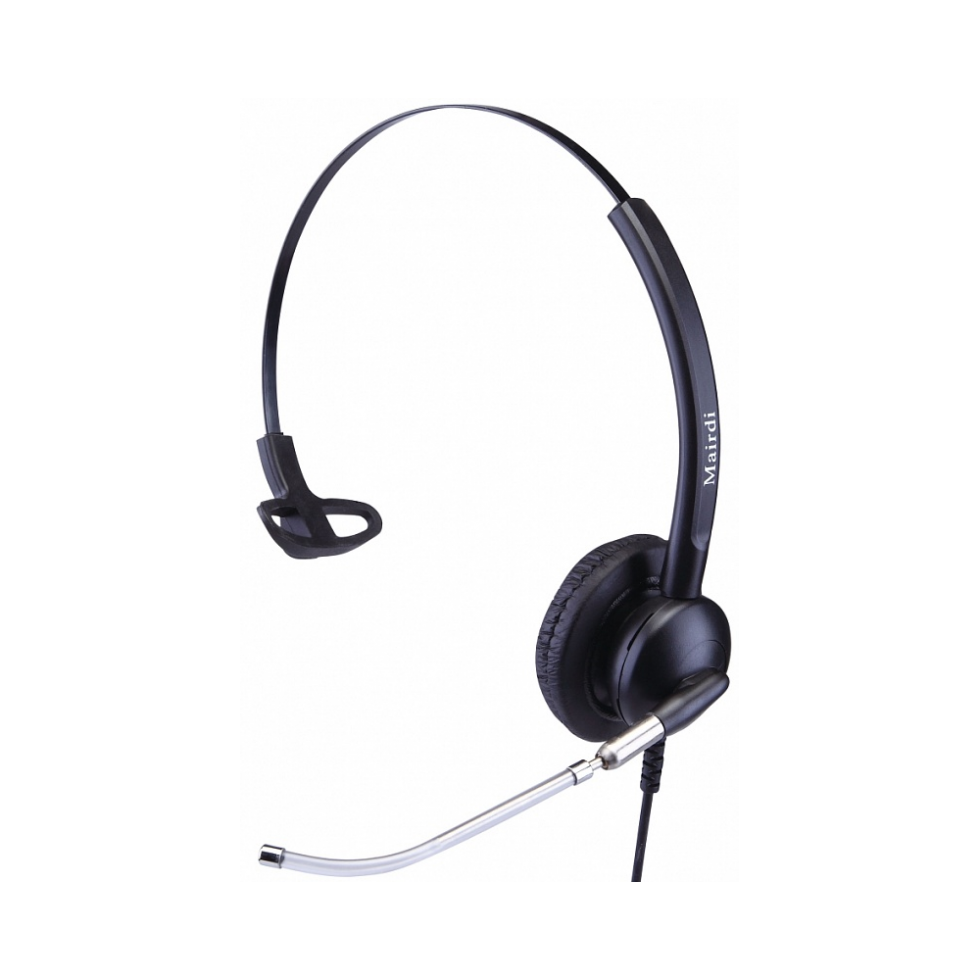 encMairdi MRD-509S — это проводная монауральная головная гарнитура. Простая и прочная конструкция делает гарнитуру надежной и долговечной. Небольшой вес, регулируемые гибкое оголовье и держатель микрофона с углом вращения 330° обеспечивают комфортное использование в течение всего дня. Разъем Quick Disconnect (QD) обеспечивает быстрое отключение гарнитуры при необходимости. Для подключения гарнитуры к конкретной модели телефона используется дополнительный переходник с разъема QD на интерфейс телефона (переходник в комплект поставки не входит).