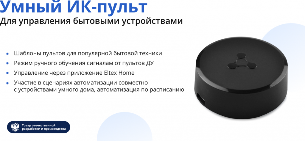 ДЛЯ УМНОГО ДОМА ELTEX ДОСТУПЕН ИК-ПУЛЬТ ДЛЯ УПРАВЛЕНИЯ БЫТОВОЙ ТЕХНИКОЙ