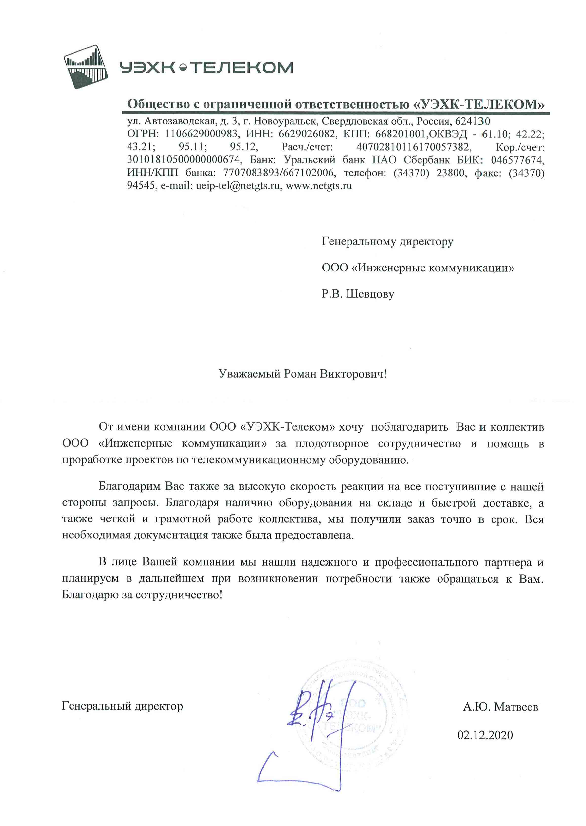 Благодарим компанию ООО "УЭХК-Телеком" за отзыв о нашей работе.