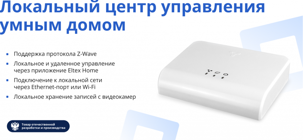 Умный дом Eltex – это целая экосистема устройств, которые помогут сделать дом комфортным и безопасным. Локальный центр полностью их поддерживает и позволяет контролировать локально без взаимодействия с интернетом. Поддерживается одновременная работа до 30 Wi-Fi смарт-устройств, 30 Z-Wave датчиков и 10 смарт-камер Eltex. Этого достаточно, чтобы покрыть потребности в автоматизации даже большого дома. Подробнее о смарт-устройствах Eltex –на сайте.SL-10-WBZ – это оптимальное решение для создания автономного умного дома. Локальный центр доступен для заказа и тестирования.