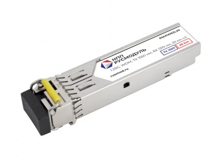 SFP модуль, 1.25G, WDM, TX 1550 нм, RX 1310 нм, 20 км, LC, RSM1W63L20. SFP Русмодуль совместимы с оборудованием Eltex. Часть SFP включена в Российский реестр радиоэлектронной продукции (РРРП).