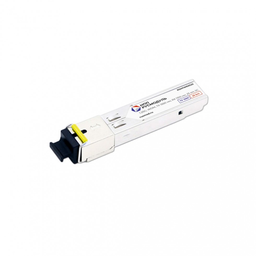SFP модуль, 1.25G, WDM, TX 1550 нм, RX 1310 нм, 25 км, SC, RSM1W63S25. SFP Русмодуль совместимы с оборудованием Eltex. Часть SFP включена в Российский реестр радиоэлектронной продукции (РРРП).