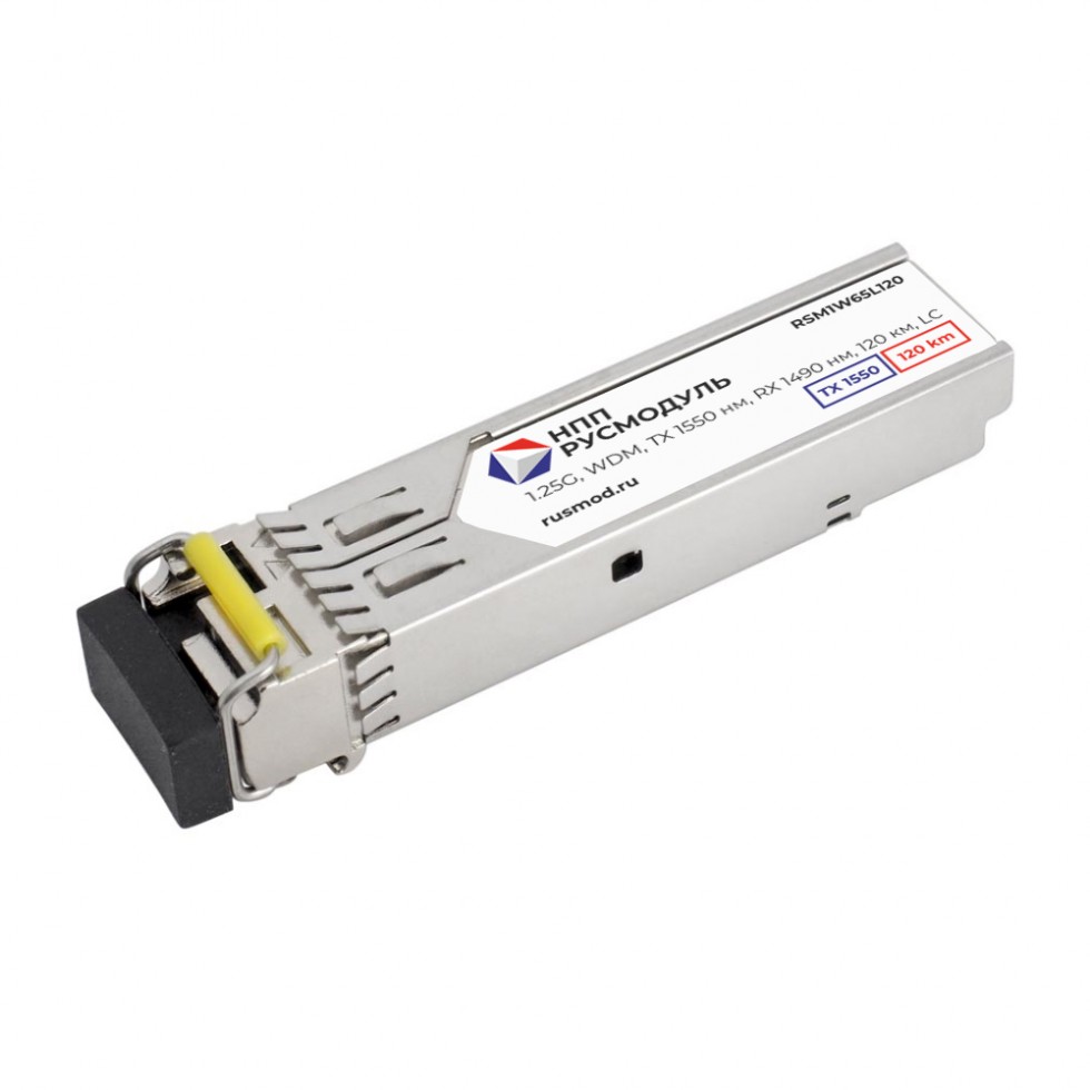 SFP модуль, 1.25G, WDM, TX 1550 нм, RX 1490 нм, 120 км, LC, RSM1W65L120. SFP Русмодуль совместимы с оборудованием Eltex. Часть SFP включена в Российский реестр радиоэлектронной продукции (РРРП).