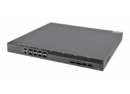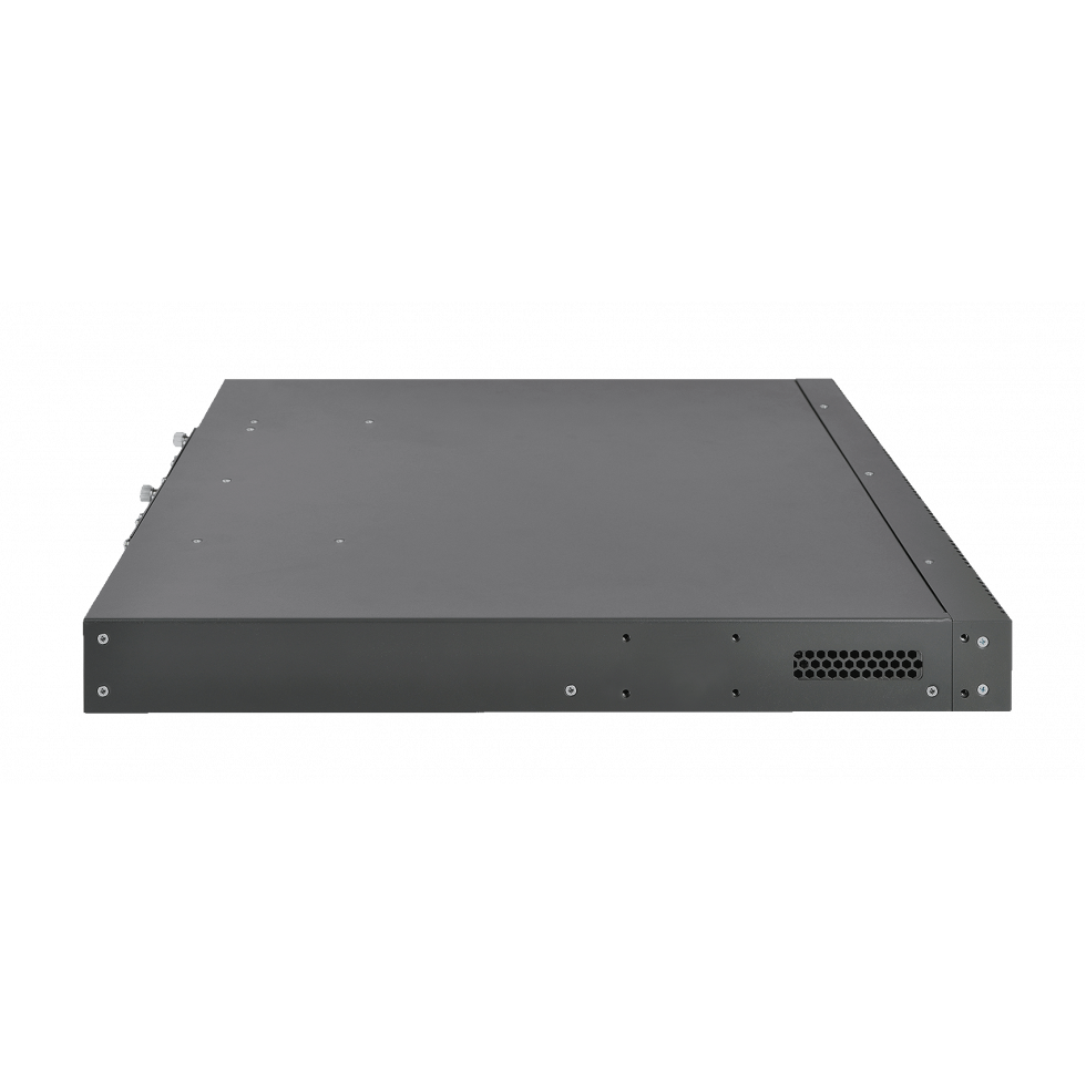 Интерфейсы XGS-PON служат для подключения оптической распределительной сети. К каждому интерфейсу можно подключить по одному волокну до 256 абонентских оптических терминалов по стандарту XGSPON или до 128 — по стандарту GPON. Выход в транспортную сеть оператора реализуется посредством 100 Gigabit и 25 Gigabit uplink-интерфейсов.