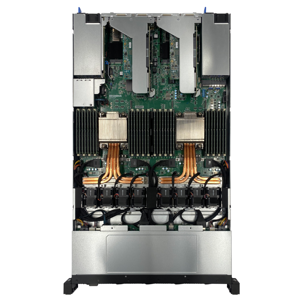 - Шасси сервера поддерживает установку до 10 накопителей при совмещении возможности установки графических ускорителей