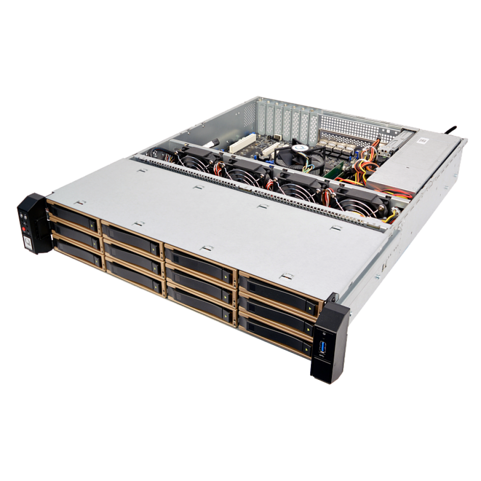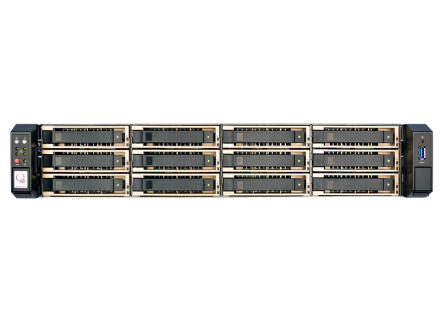 • Оснащен 12 дисками 3.5” SAS/SATA с горячей заменой