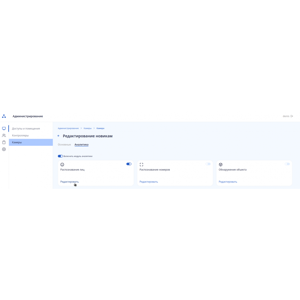 - Analytics – модуль аналитики, наделяющий видеопотоки дополнительными свойствами: автоматическая детекция событий безопасности, идентификация людей, объектов, номеров автомобилей и др.