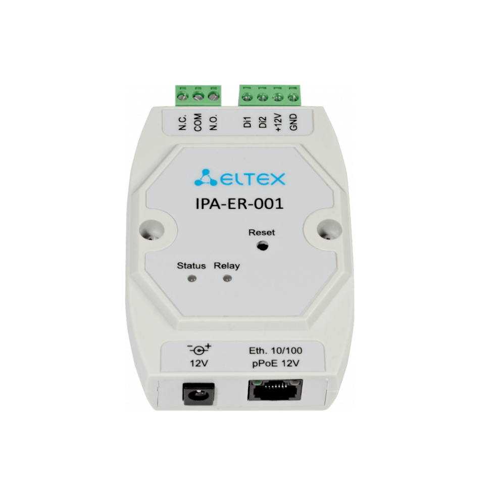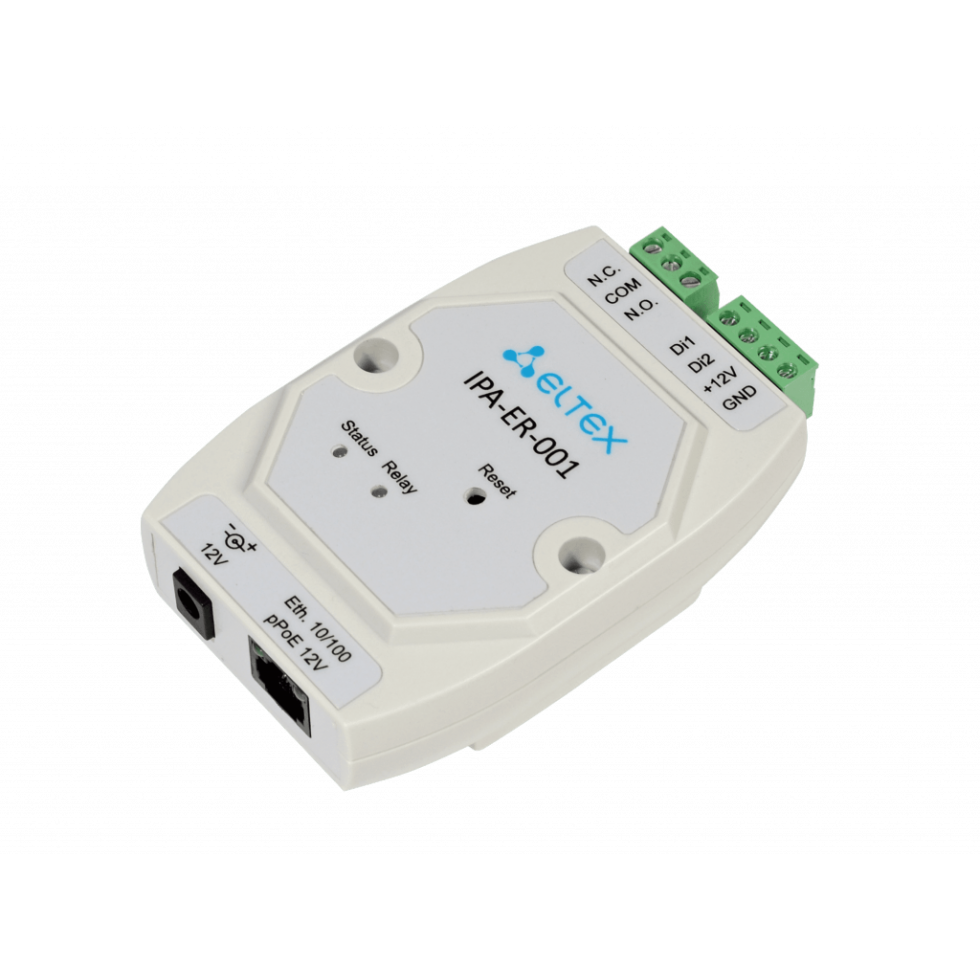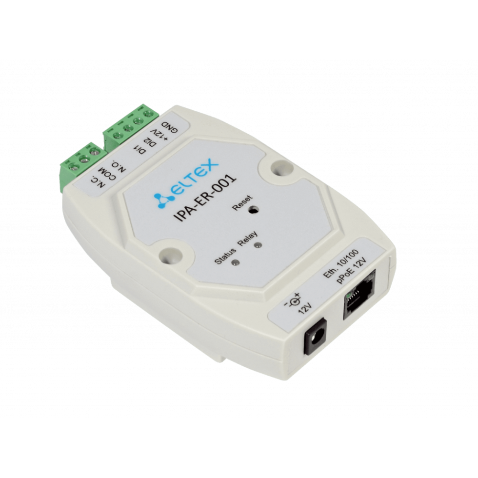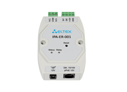 Ethernet-реле IPA-ER-001— устройство для управления электрической нагрузкой через Интернет. IPA-ER-001 может использоваться для управления шлагбаумами, дверьми и другими силовыми нагрузками. Устройство также имеет вход для дискретного датчика: геркона, концевика, оптопары и др.