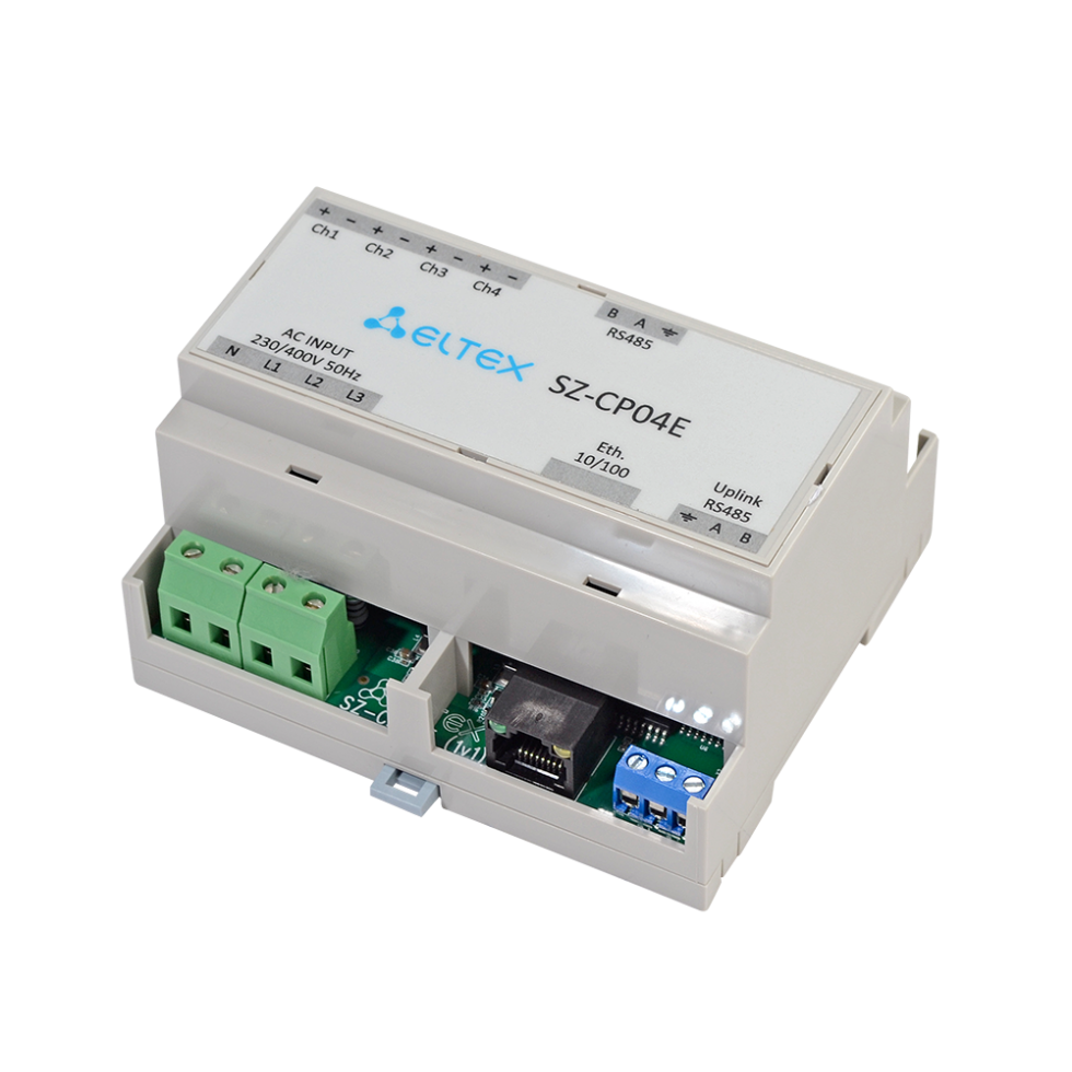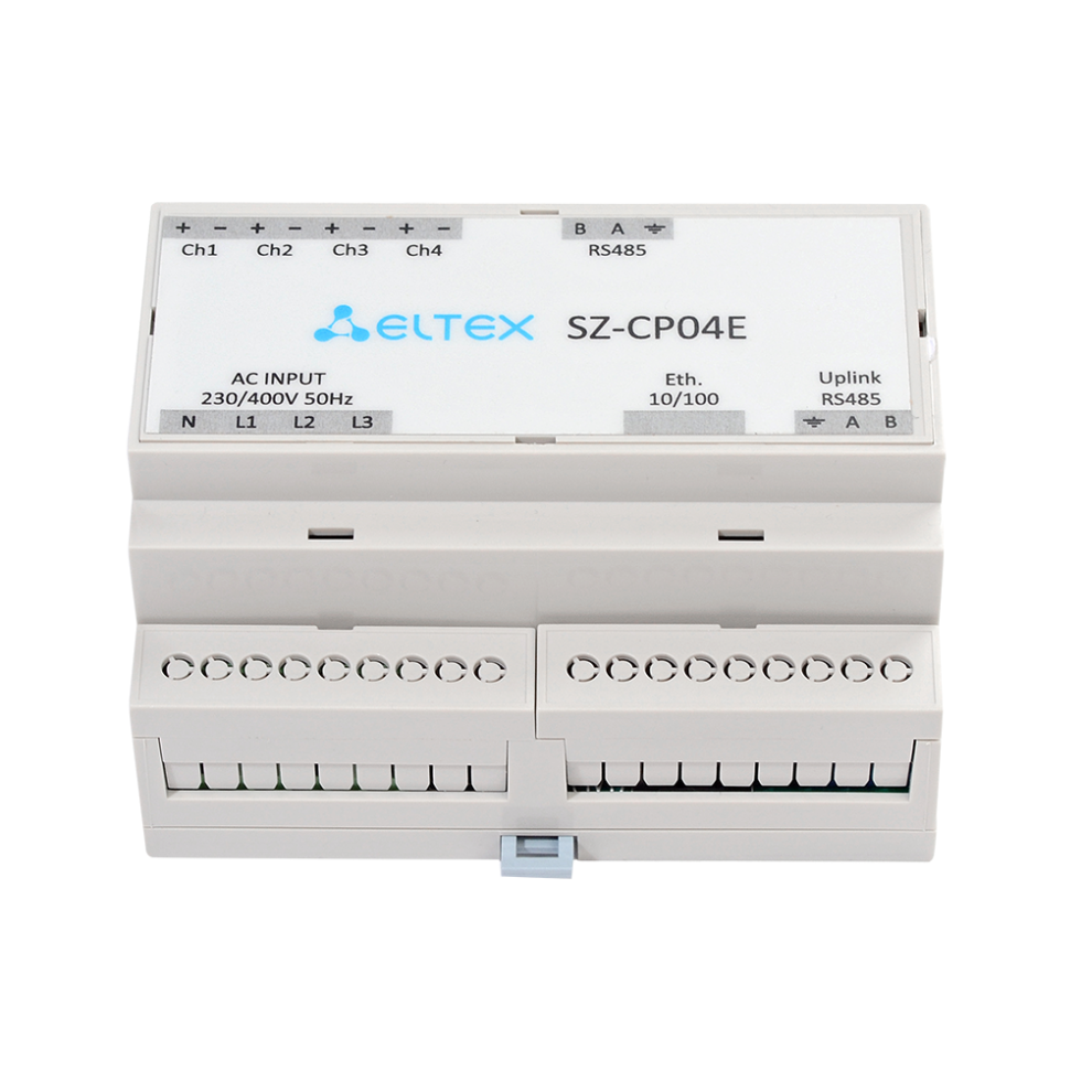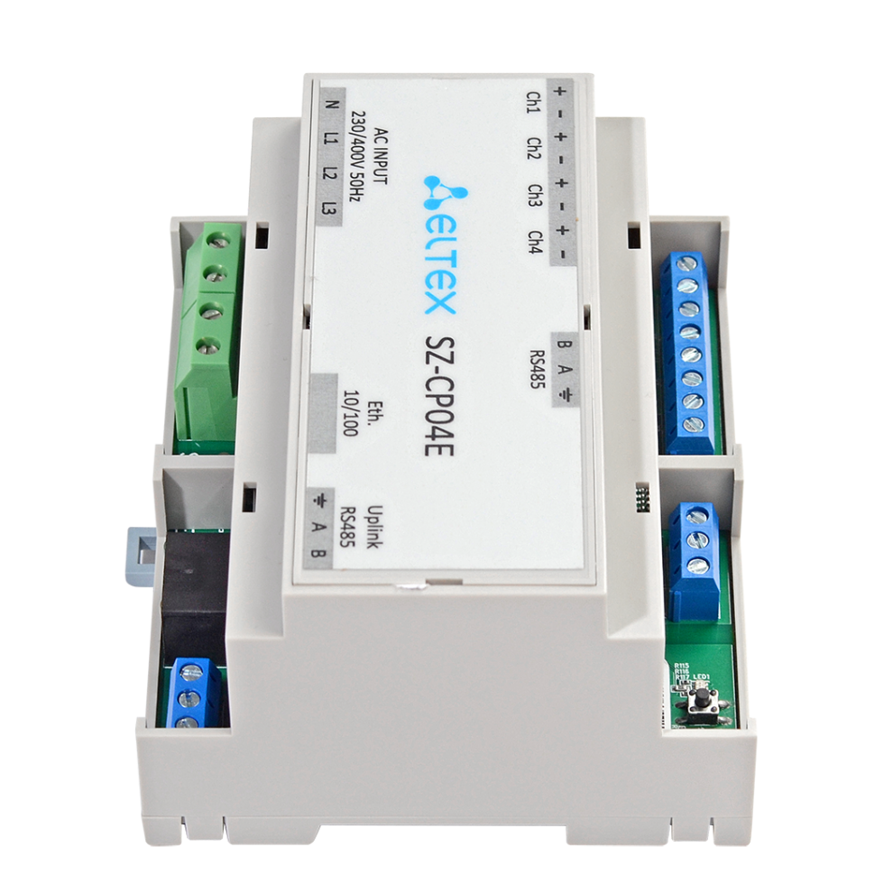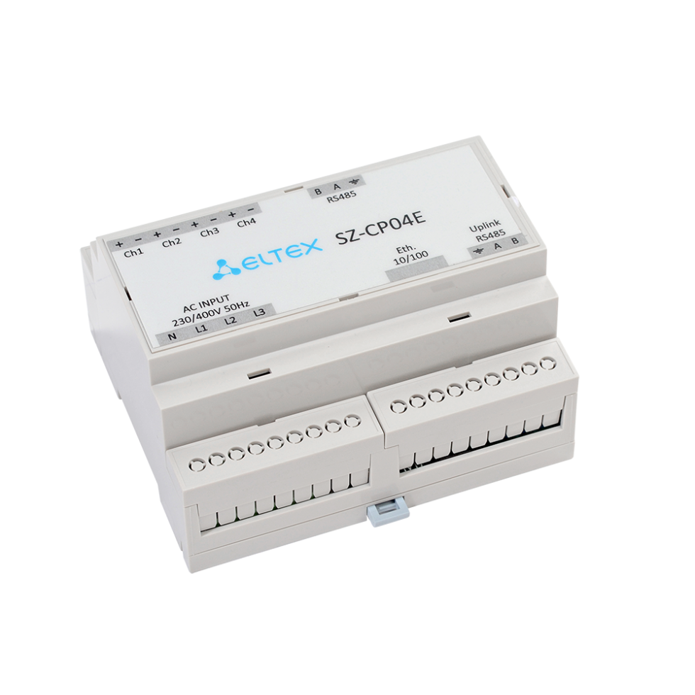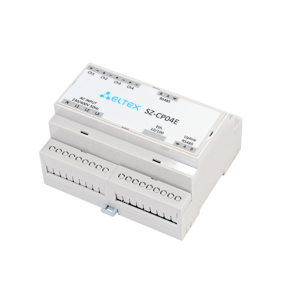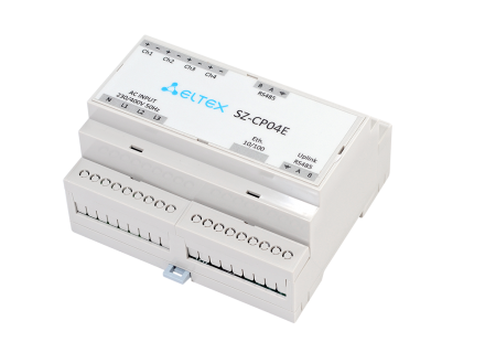 SZ-CP04EС – контроллер беспроводной сети «Умный дом» со встроенным регистратором потребления электроэнергии от приборов учета с импульсным выходом. Позволяет собирать данные с регистраторов SZ-P04C и SZ-W02 по беспроводному каналу и передавать их в платформу Eltex SC.