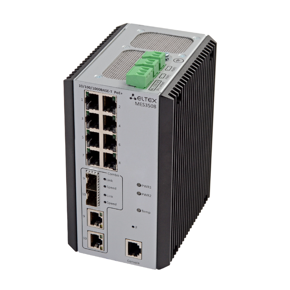 Промышленные коммутаторы ЭЛТЕКС MES3508, MES3508P и MES3608P предназначены для организации, защищенных отказоустойчивых сетей передачи данных на объектах, где необходимо выполнение требований по обеспечению устойчивости к воздействиям различного вида: температурным, механическим, вибрации и др. Оборудование оснащено гигабитными портами 10/100/1000 BASE-T и комбинированными портами 10/100/1000BASE-T/1000BASE-X для опционального подключения оптического кабеля.