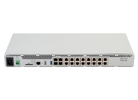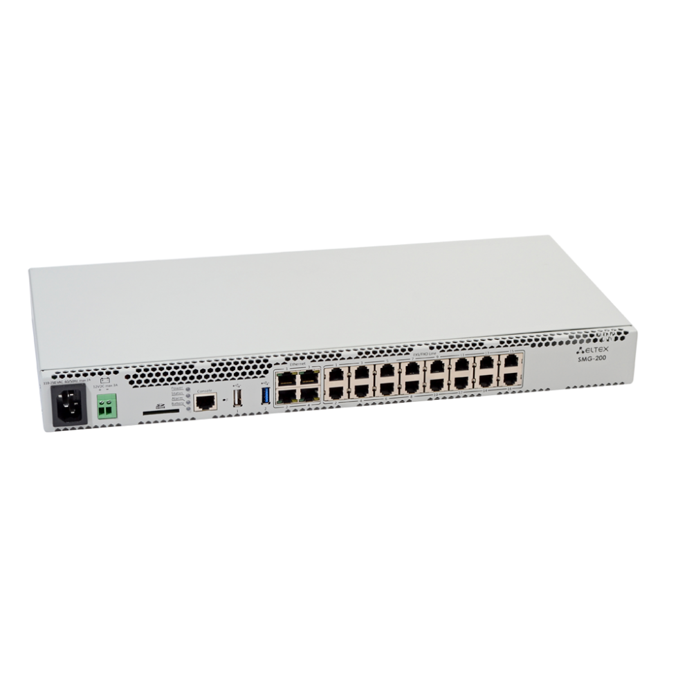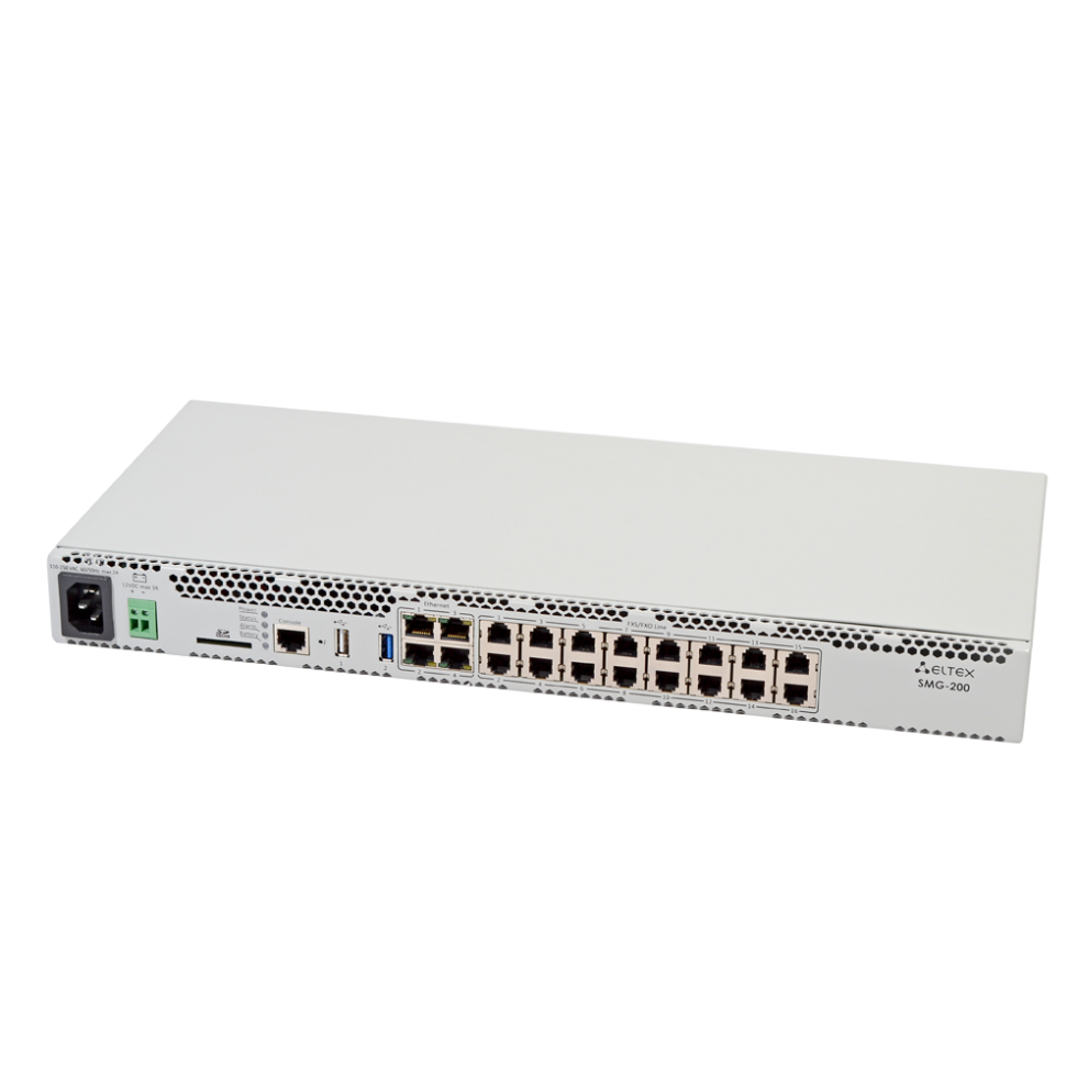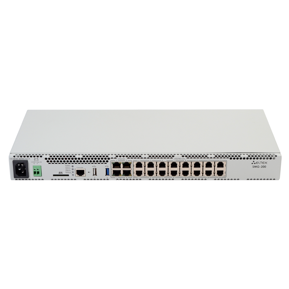 Офисная IP АТС SMG-200 рассчитана на 100 SIP-абонентов в базовой конфигурации с возможностью расширения до 200 абонентов при приобретении соответствующего ПО1. 16 портов RJ-11 могут использоваться для подключения аналоговых телефонов и городских линий АТС. Порты LAN предназначены для подключения к сетям операторов связи с помощью SIP-транков, а также для подключения VoIP-шлюзов (например, TAU-24 с поддержкой 24 FXS портов) для увеличения числа FXS/FXO портов. Записи разговоров и CDR-файлы хранятся на SD-карте либо USB-накопителе. Также предусмотрена возможность автоматической выгрузки файлов на FTP-сервер.