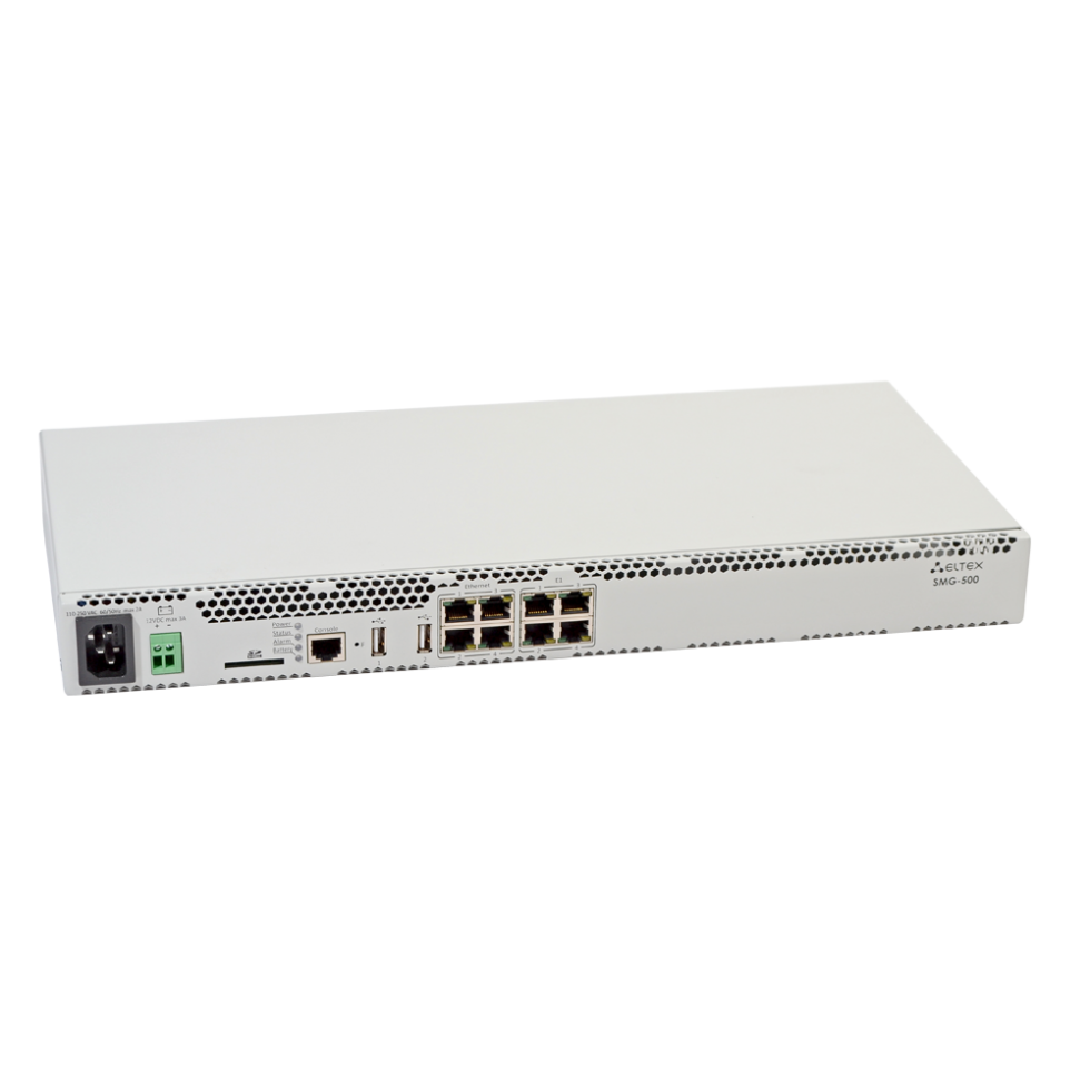 SMG-500 – офисная АТС на 500 абонентов с полным набором дополнительных абонентских сервисов (ДВО). Офисная IP АТС SMG-500 рассчитана на 250 SIP-абонентов в базовой конфигурации с возможностью расширения до 500 абонентов при приобретении соответствующего ПО1.Для подключения к ТфОП могут использоваться порты Е1 и SIP-транки. Аналоговые телефоны подключаются к SMG-500 через абонентские VoIP-шлюзы, IP-телефоны – напрямую через сеть передачи данных. Записи разговоров и CDR-файлы хранятся на SD-карте либо USB-накопителе. Также предусмотрена возможность автоматической выгрузки файлов на внешний носитель и на FTP-сервер.