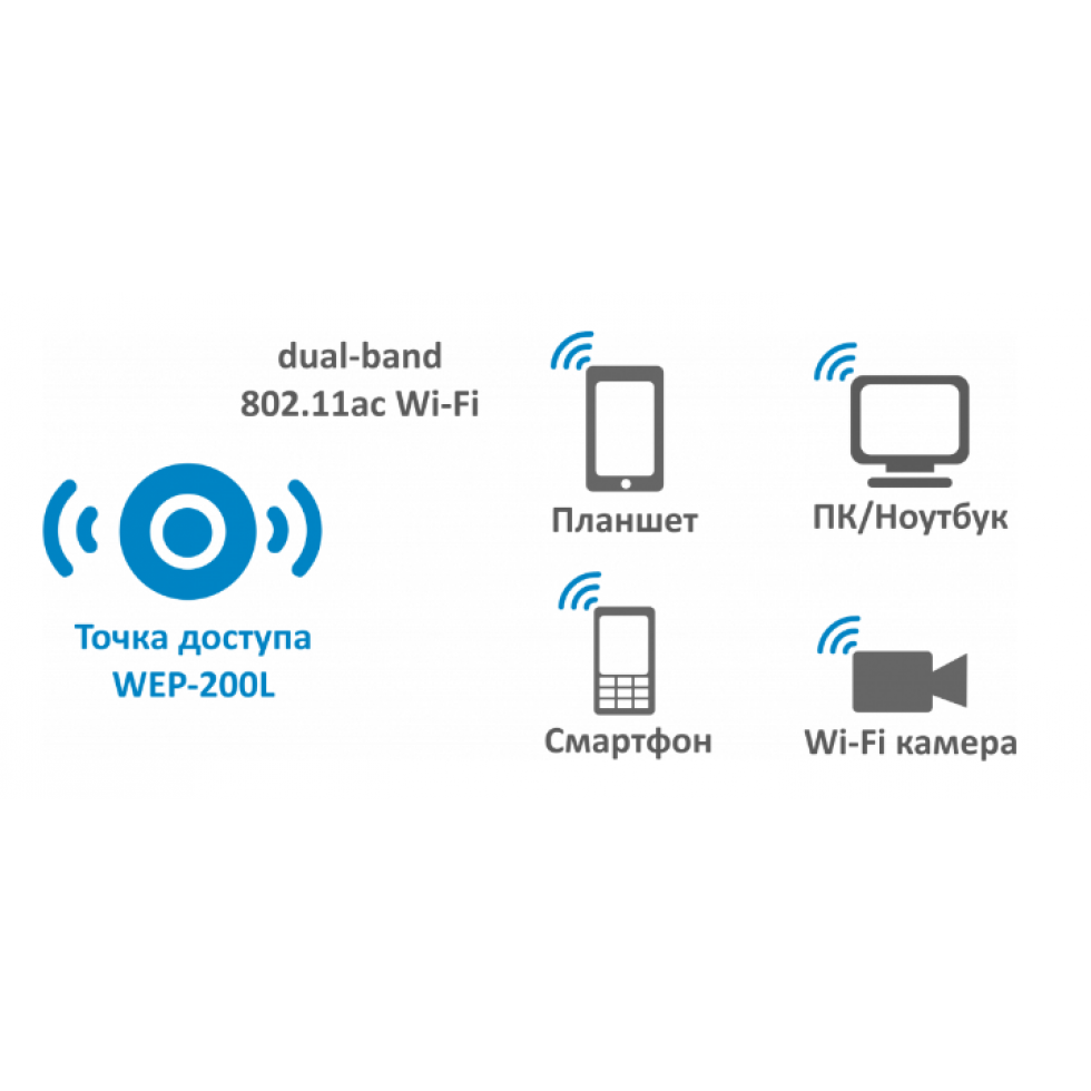 Беспроводная точка доступа WEP-200L — новейшее гибкое решение, позволяющее менять зону покрытия сети, тем самым увеличивая количество обслуживаемых мобильных устройств. Высокая производительность аппаратной платформы, возможности масштабирования и интуитивно понятный интерфейс позволяют легко и быстро разворачивать беспроводную IT-инфраструктуру.